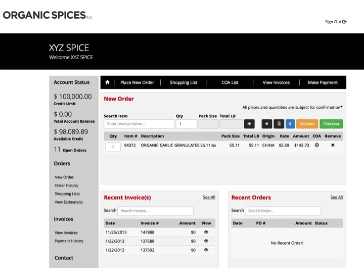 B2B customers can make payments using credit cards. And they can download certificate of analysis on placed and fulfilled orders. Once the account is set up, it’s completely self-service. Which means you can service any size account - from small, low volume accounts to large, high volume accounts.